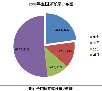 節能減排“十二五” 規劃再一次敲響中國對于處理尾礦庫危機形勢的警鐘,國家下政策規范工業生產限制排放量和能源消耗量。尾礦庫的處理成為各個礦山企業的首要解決問題。據統計,截至2009年 ,中國尾礦庫總量達到12655座,其中占比最多的河北省就有2888座,居全國第一。
